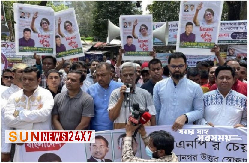স্বেচ্ছাসেবক দল ঢাকা মহানগর উত্তর বিএনপি চেয়ারপারসন বেগম খালেদা জিয়াসহ রাজবন্দিদের মুক্তির দাবিতে এ মানববন্ধনের আয়োজন করে।