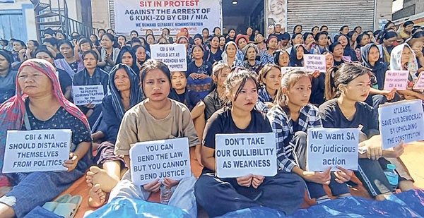 CoTU জাতীয় মহাসড়ক-37 বরাবর আরোপিত মোট বন্ধও তুলে নিয়েছে। এদিকে, পৃথক মামলায় এনআইএ এবং সিবিআই দ্বারা গ্রেফতারকৃত কুকি ব্যক্তিদের নিঃশর্ত মুক্তির দাবিতে আজ CoTU-এর নেতৃত্বে একটি অবস্থান বিক্ষোভ অনুষ্ঠিত হয়েছিল। একটি আন্তর্জাতিক ষড়যন্ত্রের মামলায় একজন কুকি ব্যক্তিকে গ্রেপ্তার করা হলেও, দুই মিতেই ছাত্রের হত্যা মামলায় সিবিআইয়ের হাতে অন্য চারজনকে গ্রেপ্তার করা হয়েছিল। সাপারমিনা ও এর আশেপাশের এলাকার শত শত মানুষ প্রতিবাদী বিক্ষোভে অংশ নেয়।