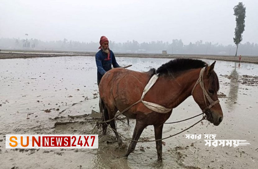 সনাতন পদ্ধতিতে গরু দিয়ে হালচাষ করলেও রোববার (২১ জানুয়ারি) ব্যতিক্রমী এক চিত্র দেখা গেছে উপজেলার থানাহাট ইউনিয়নের পেদি খাওয়া বিল নামক জায়গায়। সেখানে ঘোড়া দিয়ে জমিতে মই দিতে দেখা গেছে এক কৃষককে। এতে করে উৎপাদন খরচ বাঁচবে বলে জানান ওই কৃষক। ওই কৃষকের নাম আব্দুল মজিদ। তিনি একই এলাকার ছোট কুষ্টারি গ্রামের বাসিন্দা।