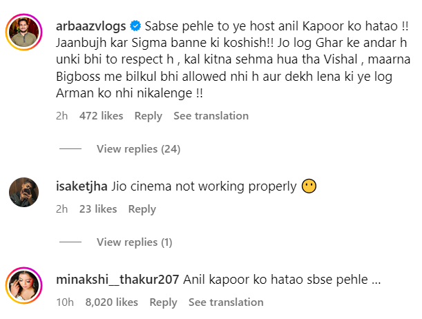 বিশালকে চড় মারার পর থেকেই শোয়ের ভক্তরা অনিল কাপুরের ওপর বিরক্তি প্রকাশ করছেন। অনেক ভক্ত বিশ্বাস করেন যে আয়োজক অনিল কাপুর বিশাল পান্ডের সাথে খুব কঠোর। তিনি ক্রমাগত বিশালকে টার্গেট করেন।