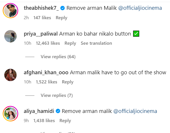 এখন খবর হচ্ছে, বিতর্কিত মন্তব্যের পর বিশালকে চড় মেরেছেন আরমান মালিক। সম্প্রতি Jio Cinema শোটির একটি নতুন প্রোমো প্রকাশ করেছে যাতে আরমান মালিককে বিশালকে চড় মারতে দেখা যায়। আরমান মালিক এবং বিশালের মধ্যে তর্কের মধ্য দিয়ে এই লড়াই শুরু হয়েছিল, তবে পরে বিষয়টি উভয়ের মধ্যে হাতাহাতি পর্যন্ত পৌঁছায়।