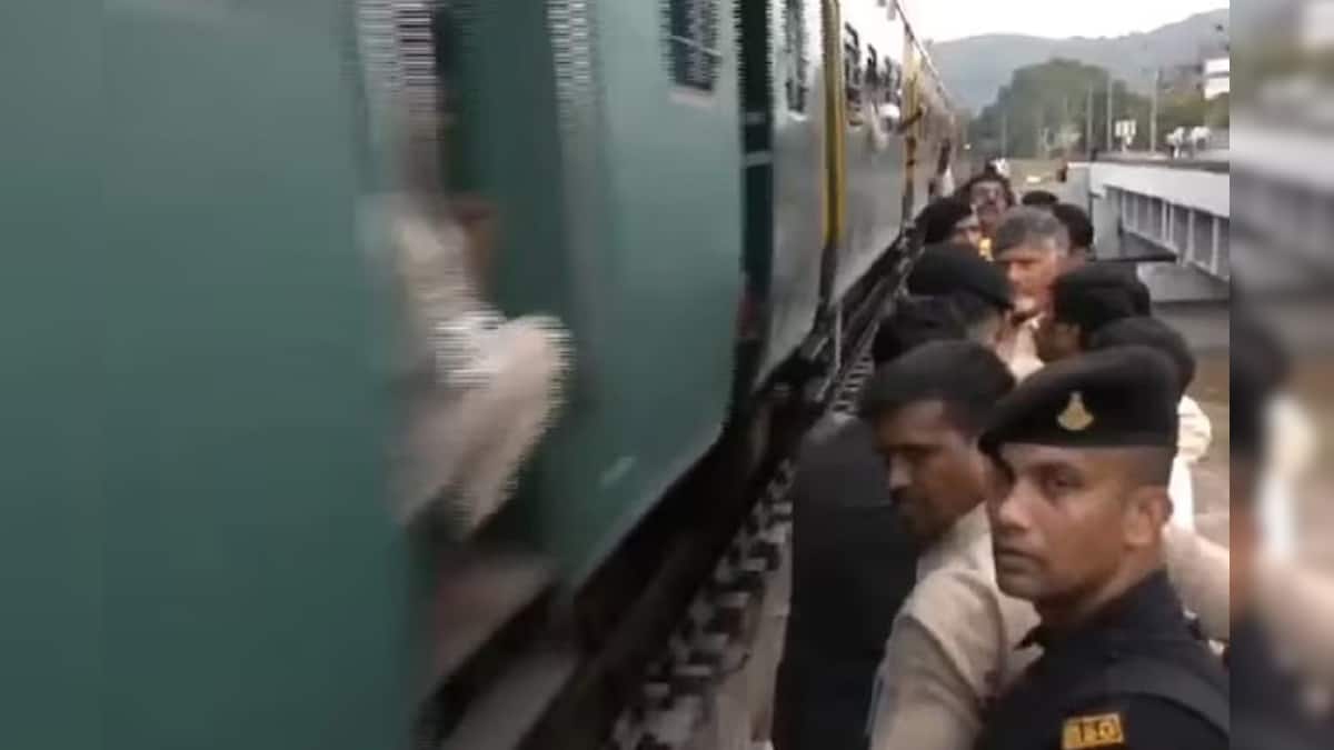 Tense moments unfolded on Thursday when Andhra Pradesh Chief Minister N Chandrababu Naidu found himself just steps away from a speeding train while inspecting flood-affected areas near… pic.twitter.com/jSH5c5hSZq