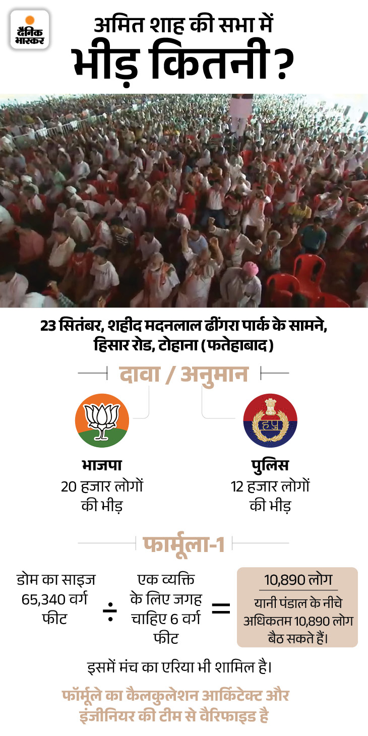 হরিয়ানা নির্বাচন নিয়ে সোমবার আড়াই ঘণ্টার মধ্যে দুটি সমাবেশ করেছেন কেন্দ্রীয় স্বরাষ্ট্রমন্ত্রী অমিত শাহ। তোহানায় প্রথম জনসভা হয়। যেখানে 25 মিনিটের ভাষণ দেন শাহ। দ্বিতীয় জনসভা হল জগধ্রীতে। যেখানে শাহ ৩৪ মিনিট বক্তব্য রাখেন।