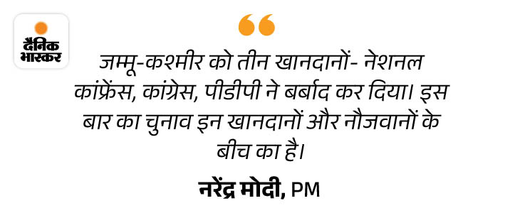 মোদি বলেছেন- ৩টি পরিবার জম্মু ও কাশ্মীরকে ধ্বংস করেছে: এরা হল পিডিপি, কংগ্রেস এবং ন্যাশনাল কনফারেন্স।