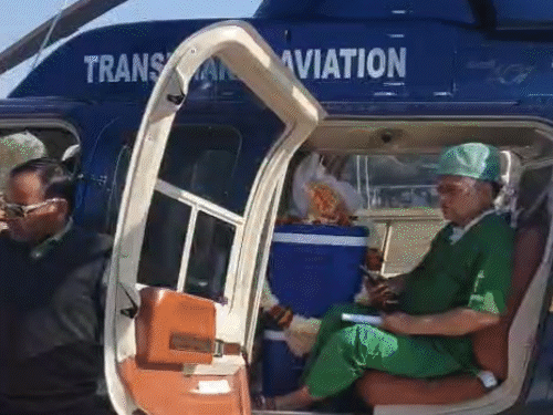 সকাল সাড়ে ১০টার দিকে ঝালাওয়ার পুলিশ প্যারেড গ্রাউন্ড থেকে হেলিকপ্টারটি উড্ডয়ন করে। সকাল সাড়ে ১১টায় হেলিকপ্টারটি এসএমএস মেডিকেল কলেজে অবতরণ করবে। যেখান থেকে গ্রিন করিডর করে অঙ্গগুলো এসএমএস হাসপাতালে নিয়ে যাওয়া হবে।
