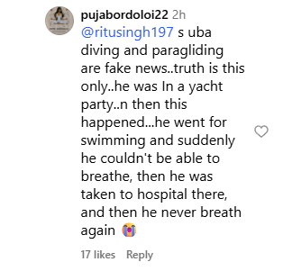 ভক্তরা সামনে সিঙ্গারের ভিডিওর পরে প্রশ্ন উত্থাপন করছেন। তিনি বলেছেন যে এটি স্কুবা ডাইভিং নয়। একই সময়ে, কিছু ব্যবহারকারী তাদের মাতাল বলছেন। একজন ব্যবহারকারী লিখেছেন- ‘তাঁর মৃগী রোগের চিকিত্সার ইতিহাস ছিল এবং এ জাতীয় অ্যাডভেঞ্চারের ক্রীড়া ক্রিয়াকলাপ এড়ানো উচিত ছিল। খুব দ্রুত ল্যান্টেড, খুব দু: খিত, আরআইপি @জুবিন.গার্গ। ‘একজন ব্যবহারকারী লিখেছেন-‘ তারা সর্বদা মাতাল ছিল, যার কারণে এই ভয়াবহ দুর্ঘটনা ঘটেছে। ‘