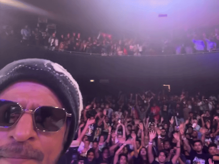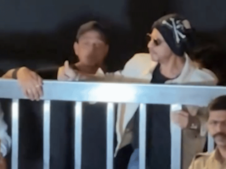 মিট-আপ থেকে বেরিয়ে এসে শাহরুখ খান ব্যারিকেডের পিছনে দাঁড়িয়ে ভক্তদের উদ্দেশে হাত নাড়লেন।