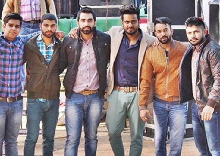 গ্যাংস্টার লরেন্সের (ডানদিকে) সঙ্গে ছবিতে দাঁড়িয়ে গায়ক মানকিরাত আউলখ (ডান থেকে তৃতীয়)।