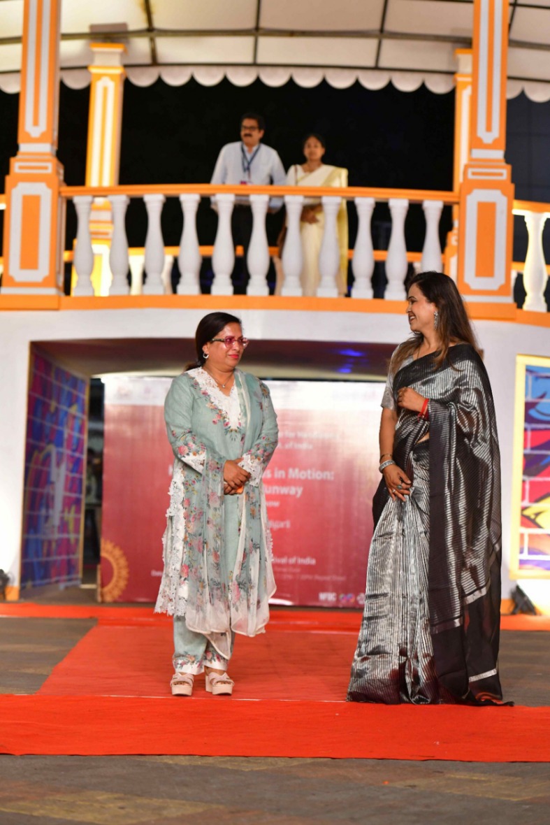 র্যাম্পে 40 টিরও বেশি তাঁতের শাড়ি দেখানো হয়েছিল। ছত্তিশগড়ের তুষার সিল্ক, ইউপির বেনারসি, এমপির চান্দেরি, অন্ধ্রের ভেঙ্কটগিরি, কেরালার কুথামপল্লি সহ অনেক রাজ্যের বুনন দর্শকদের মন্ত্রমুগ্ধ করেছিল। এই শাড়িগুলির মধ্যে কিছু পুরস্কার বিজয়ী শিল্পীদের হাতে আঁকা ছিল, যার মধ্যে পিচওয়াই, পট্টচিত্র, মধুবনী, ওয়ারলি এবং গন্ড শিল্পের ঝলকও রয়েছে।