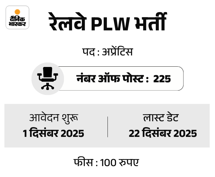 পাতিয়ালা লোকোমোটিভ ওয়ার্কস (PLW) PLW শিক্ষানবিশ নিয়োগ 2025-এর জন্য বিজ্ঞপ্তি প্রকাশ করেছে। এই নিয়োগের জন্য আবেদন প্রক্রিয়া চলছে। প্রার্থীরা অফিসিয়াল ওয়েবসাইট plw.indianrailways.gov.in-এ গিয়ে আবেদন করতে পারেন।