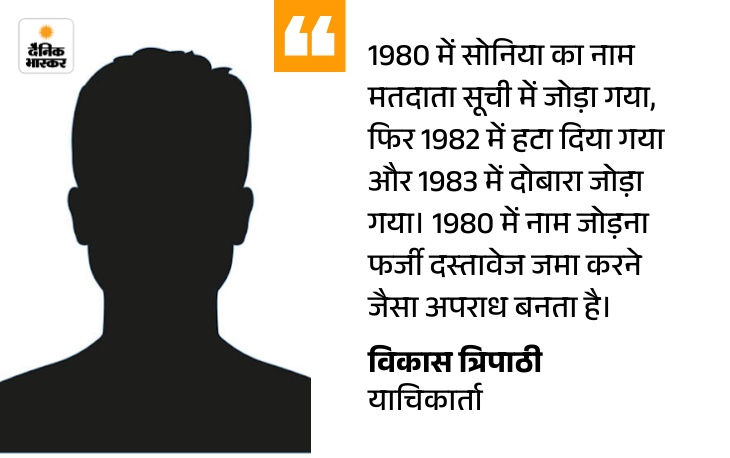 এছাড়াও, আবেদনটি ম্যাজিস্ট্রেটের সিদ্ধান্তকে চ্যালেঞ্জ করেছে যেখানে সোনিয়া গান্ধীর বিরুদ্ধে দায়ের করা অভিযোগ খারিজ করা হয়েছিল। আদালত এই বিষয়ে রাজ্য সরকারকে একটি নোটিশও জারি করেছে এবং পুরো মামলার রেকর্ড (টিসিআর) তলব করেছে। পরবর্তী শুনানি হবে ৬ জানুয়ারি। এই সময় সোনিয়া ও রাজ্য সরকারকে নোটিশের জবাব দিতে হবে। এই আবেদনটি দায়ের করেছেন বিকাশ ত্রিপাঠী। মামলার শুনানি করেন বিশেষ জজ (পিসি অ্যাক্ট) বিশাল গোগানে। আবেদনকারী দাবি করেছিলেন যে সোনিয়া গান্ধীর নাম 1980 সালে নতুন দিল্লি বিধানসভা কেন্দ্রের ভোটার তালিকায় ছিল, যখন তিনি 1983 সালের এপ্রিলে ভারতের নাগরিক হয়েছিলেন।