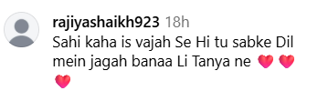 তানিয়াকে সমর্থন করতে গিয়ে এক ব্যবহারকারী লিখেছেন- ‘সে যেভাবে সবাইকে সম্মান করে।’ একজন লিখেছেন- ‘ঠিক বলেছেন, এই জন্যই সবার হৃদয়ে জায়গা করে নিয়েছেন।’