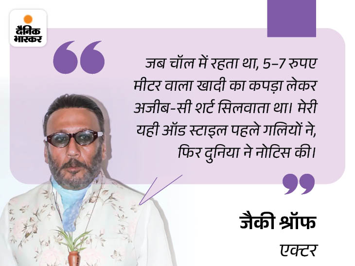 নিজের লুক এবং স্টাইল নিয়ে কথা বলতে গিয়ে জ্যাকি বলেন – আমি যখন একটি চালে থাকতাম, খাদির দোকান থেকে প্রতি মিটারে ৫-৭ টাকায় কাপড় কিনতাম। পর্দার মতো অদ্ভুত জিনিস কেটে শার্ট তৈরি করতেন। আমি অদ্ভুত জিনিসগুলি খুব পছন্দ করতাম, কারণ রাস্তা দিয়ে হাঁটার সময় আমি ভাবতাম কুকুররা আমার দিকে তাকিয়েই ‘উফ-উফ’ করে ঘেউ ঘেউ করবে। হ্যাঁ, আমি অন্যরকম দেখতে। সবাইকে চিৎকার করে না, আমাকে চিৎকার করে। তাই এমন পোশাক পরে আমি নিজেই অন্যরকম হয়ে গেছি।”