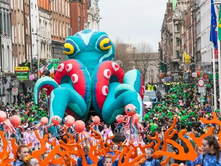 রাজধানী ডাবলিনে ‘সেন্ট পিটার্সবার্গ’ উপলক্ষে চারদিন ধরে উৎসবের পরিবেশ বিরাজ করছে। প্যাট্রিক ডে’, আয়ারল্যান্ডের সবচেয়ে বড় জাতীয় উৎসব। সারা বিশ্বের ৫ লাখেরও বেশি মানুষ এই উৎসবে অংশ নেন। উৎসবের প্রধান আকর্ষণ ছিল ১৭ মার্চ জাতীয় কুচকাওয়াজ। এ সময় রাস্তায় আন্তর্জাতিক মার্চিং ব্যান্ড, নৃত্যশিল্পী এবং রঙিন ট্যাবক্স দেখা যায়। পুরো শহরটি এই সেন্ট প্যাট্রিক দিবসে সবুজ রঙে রঞ্জিত হয়েছিল। আপনি ডাবলিনে যেখানেই তাকান, সবুজ দৃশ্যমান ছিল এবং বিশ্বজুড়ে বিভিন্ন উচ্চারণ শোনা যায়। উৎসবমুখর পরিবেশ ছিল পুরোদমে এবং আয়ারল্যান্ডের প্রেসিডেন্ট মাইকেল ডি হিগিন্সের সামনে একটি বিশাল কুচকাওয়াজ বের করা হয়। আয়ারল্যান্ডের রাজধানীতে বিশ্বব্যাপী দর্শনার্থীরা সবুজ রঙের বিভিন্ন রঙের পোশাক পরে, আইরিশ ঐতিহ্যবাহী সঙ্গীত, স্থানীয় এবং আন্তর্জাতিক মার্চিং ব্যান্ড এবং অবিরাম রাস্তার বিনোদনের শব্দে। ডাবলিনসহ অনেক এলাকায় সাংস্কৃতিক অনুষ্ঠানেরও আয়োজন করা হয়। এই উৎসবটি ‘সেন্ট’-এর মৃত্যুবার্ষিকীতে অনুষ্ঠিত হয়। প্যাট্রিক’, আয়ারল্যান্ডের পৃষ্ঠপোষক সন্ত, যিনি এখানে 5 ম শতাব্দীতে খ্রিস্টধর্ম প্রচার করেছিলেন। 1631 সালে চার্চ থেকে ধর্মীয় স্বীকৃতি পাওয়ার পর, এটি এখন একটি বৈশ্বিক সাংস্কৃতিক উৎসবে পরিণত হয়েছে। প্রথম প্যারেড হয়েছিল 1931 সালে।