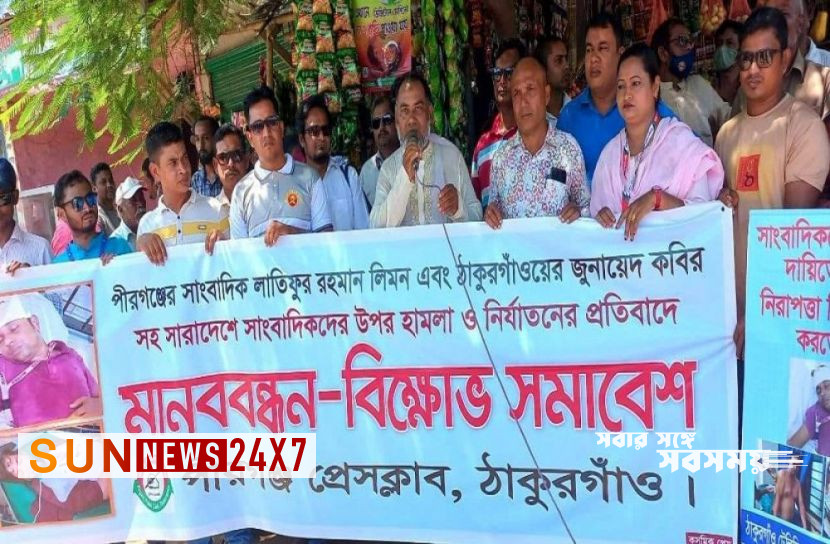 বদরুল ইসলাম বিপ্লব, ঠাকুরগাঁও প্রতিনিধি: ঠাকুরগাঁও প্রতিদিনের সংবাদ পত্রিকার ঠাকুরগাঁও জেলা প্রতিনিধি জুনায়েদ কবির সহ সারাদেশে সাংবাদিক নির্যাতনের প্রতিবাদে পীরগঞ্জে মানববন্ধন ও বিক্ষোভ সমাবেশ করেছে সাংবাদিকরা।