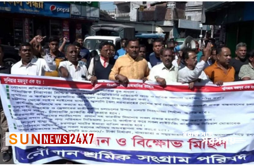 শ্রমিকরা কর্মবিরতি সফল করতে বরিশালে বিক্ষোভ মিছিল ও সমাবেশ করেছে।
