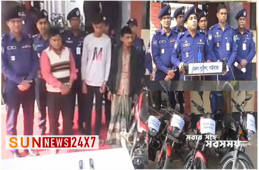 আশরাফুজ্জামান, গাইবান্ধা প্রতিনিধি : গাইবান্ধা জেলায় আন্তঃজেলা কুখ্যাত মোটরসাইকেল চোর চক্রের মূল হোতা কালামসহ তিনজনকে গ্রেফতার ও চারটি মোটরসাইকেলসহ বিভিন্ন চোরাই সামগ্রী উদ্ধার করেছেন গাইবান্ধার পুলিশ।